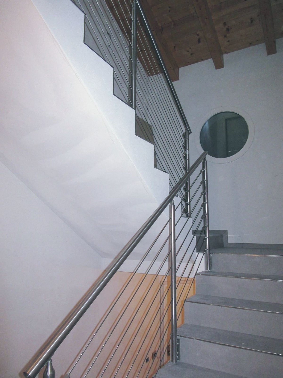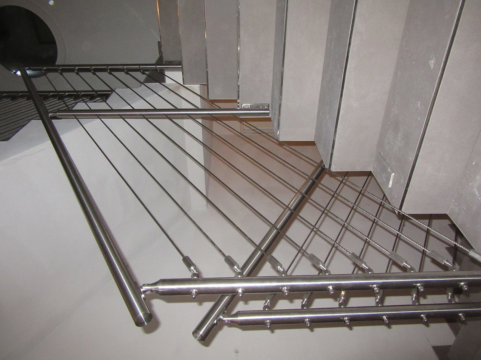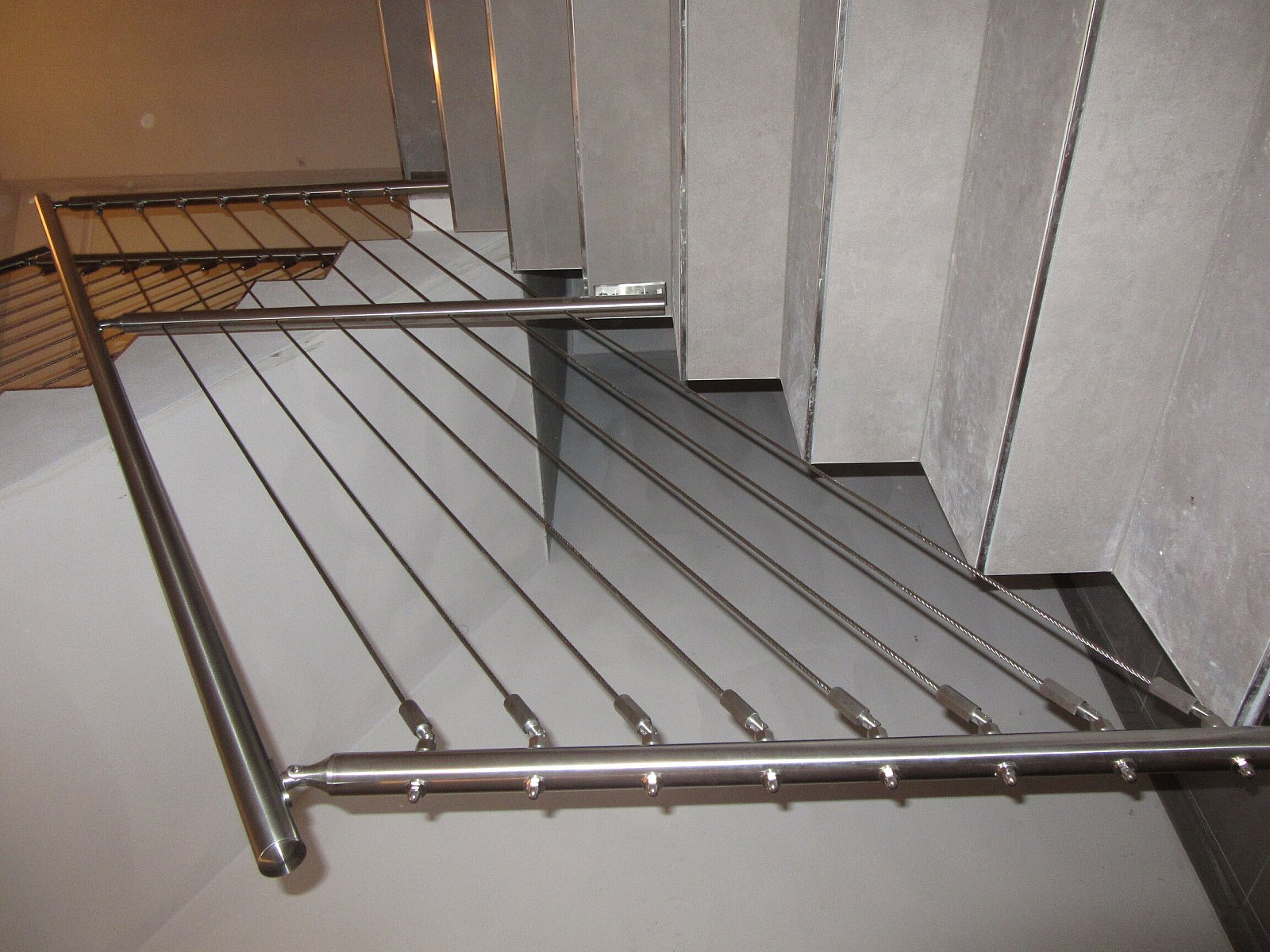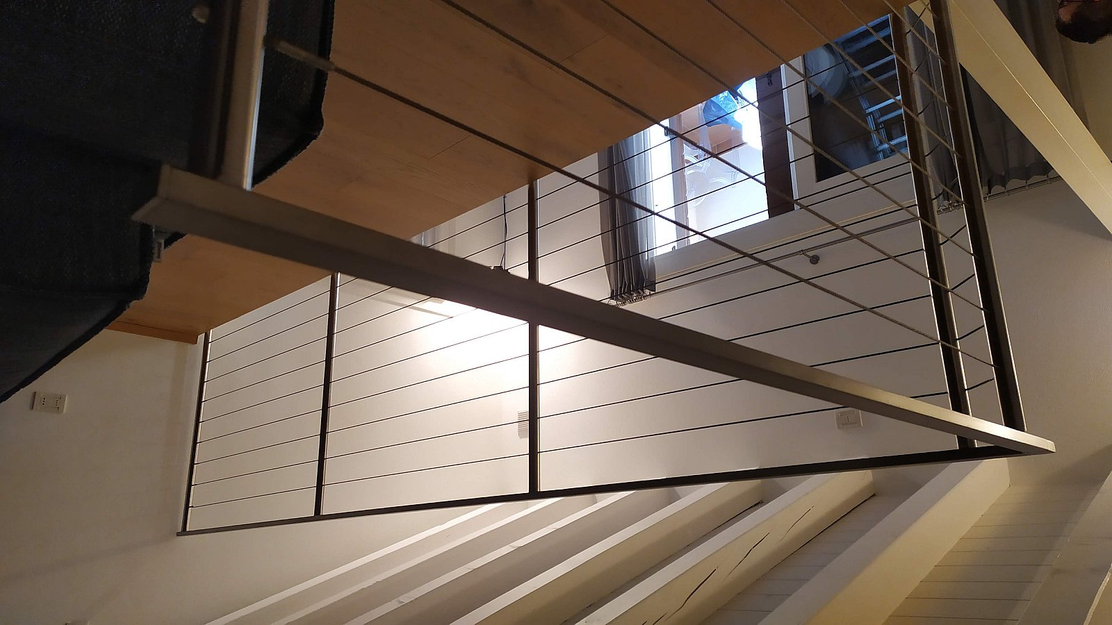 Sono progettati e realizzati su misura con montanti e corrimano in tubolare, quadro e piatto. I nostri parapetti con funi in acciaio rispondono e si adattano nel migliore dei modi alle diverse esigenze di forme e spazi. E’possibile scegliere tra la configurazione con funi passanti o esterne del diametro di 4 o 6 mm, il numero di funi è da stabilire in fase di preventivo.