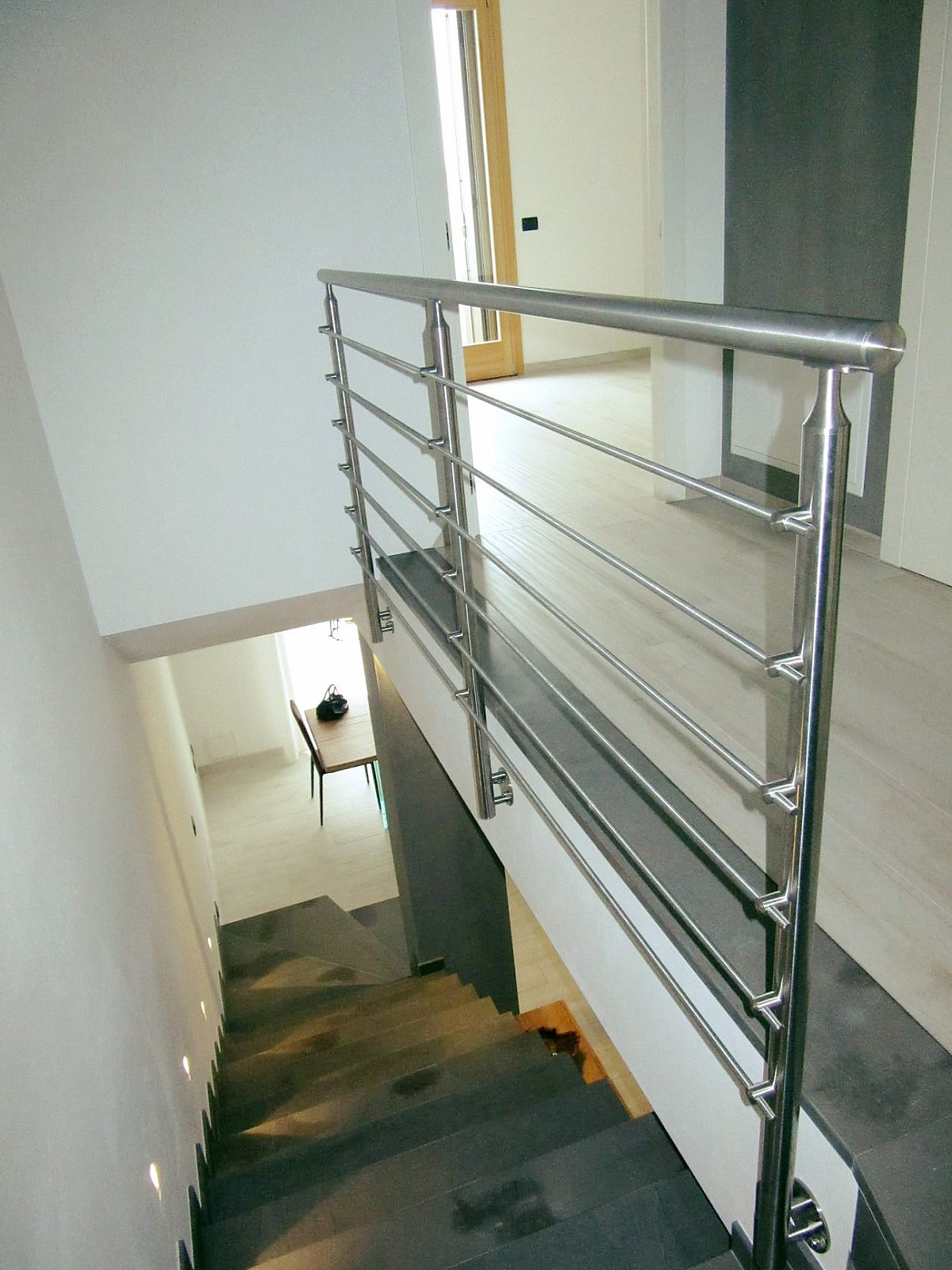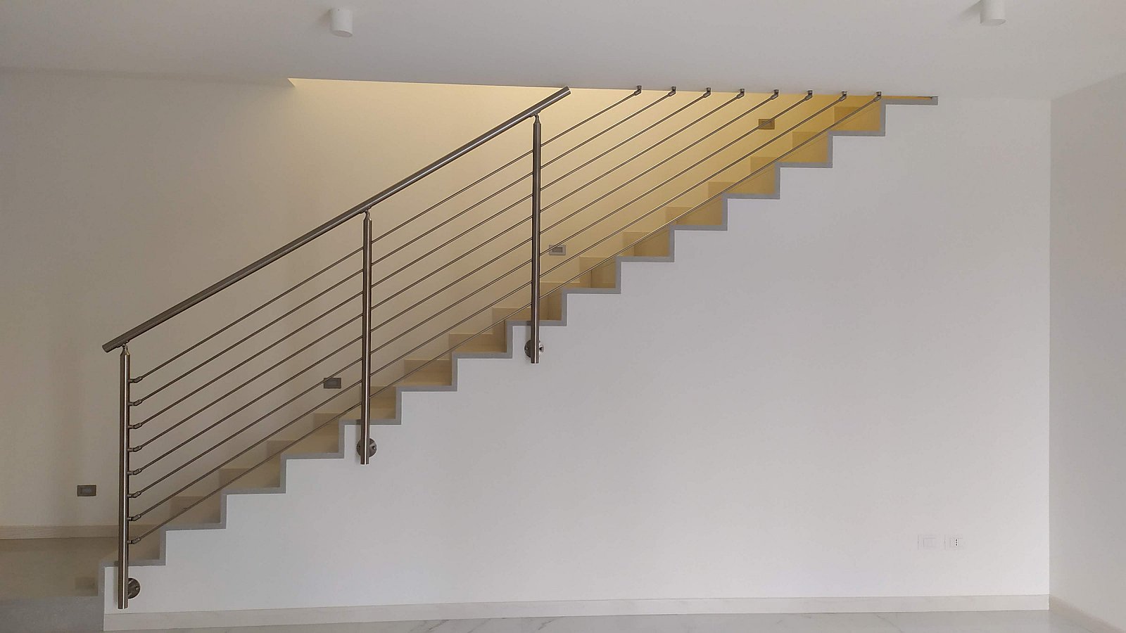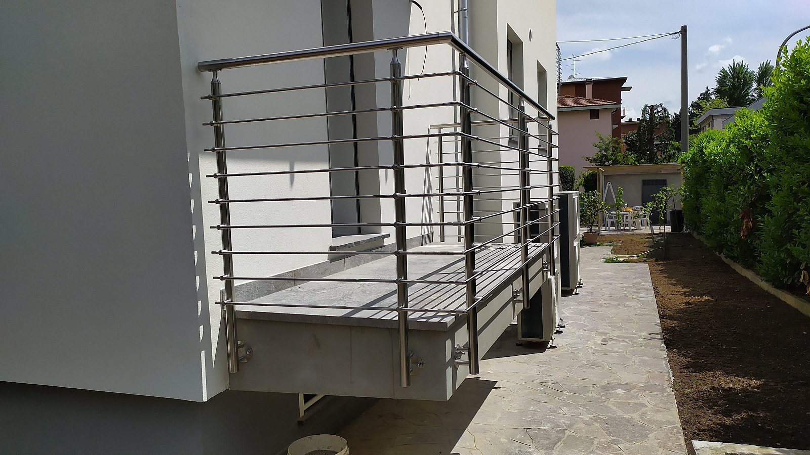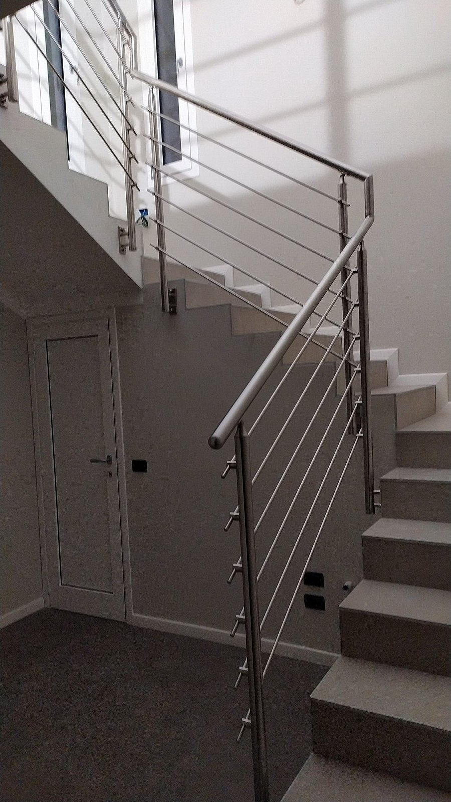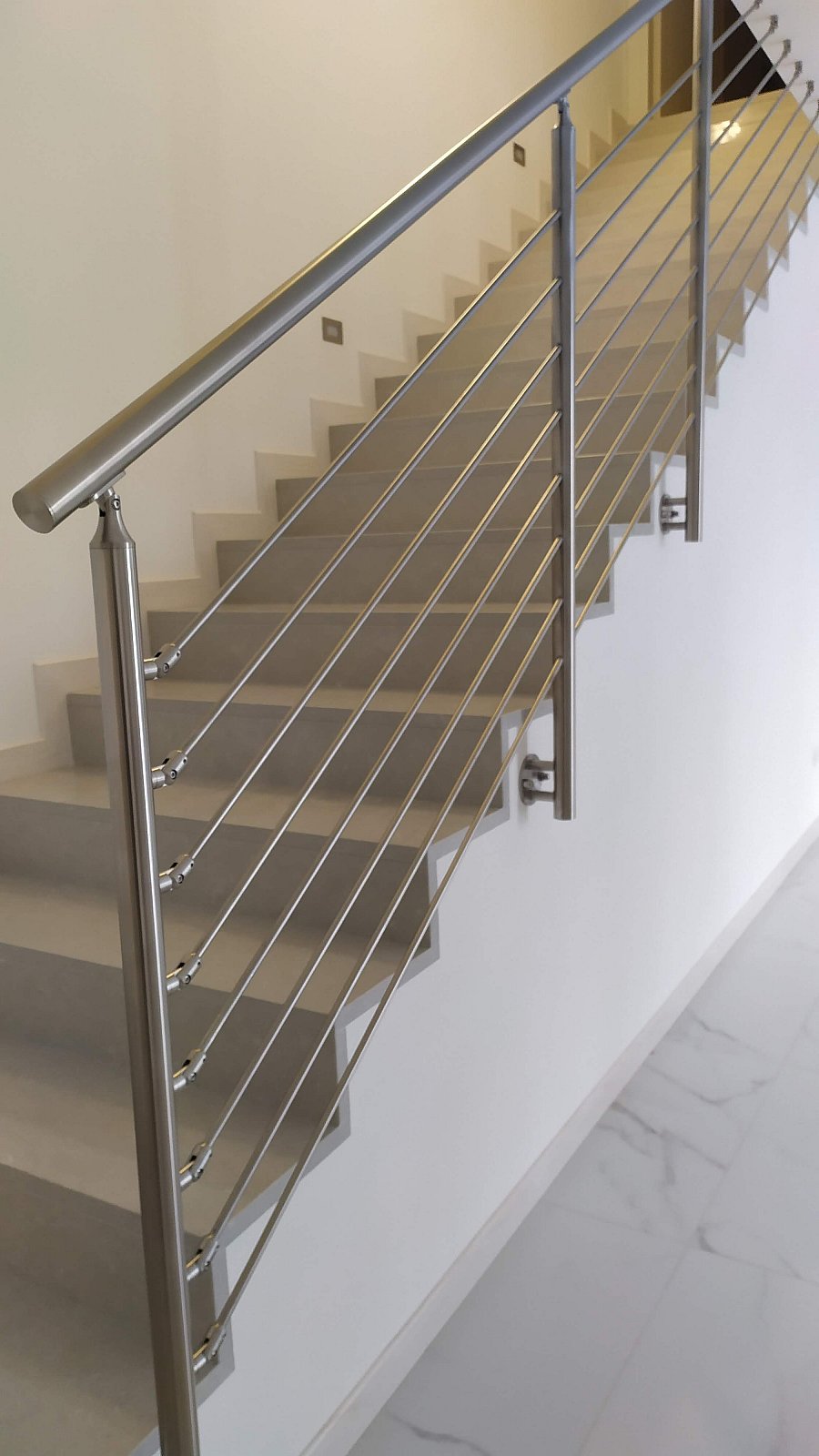 Si realizzano con corrimano e montanti in tubolare del diametro di 42,4 o 33,7 mm; i tondini del diametro di 10 e 12 mm possono essere passanti o esterni.