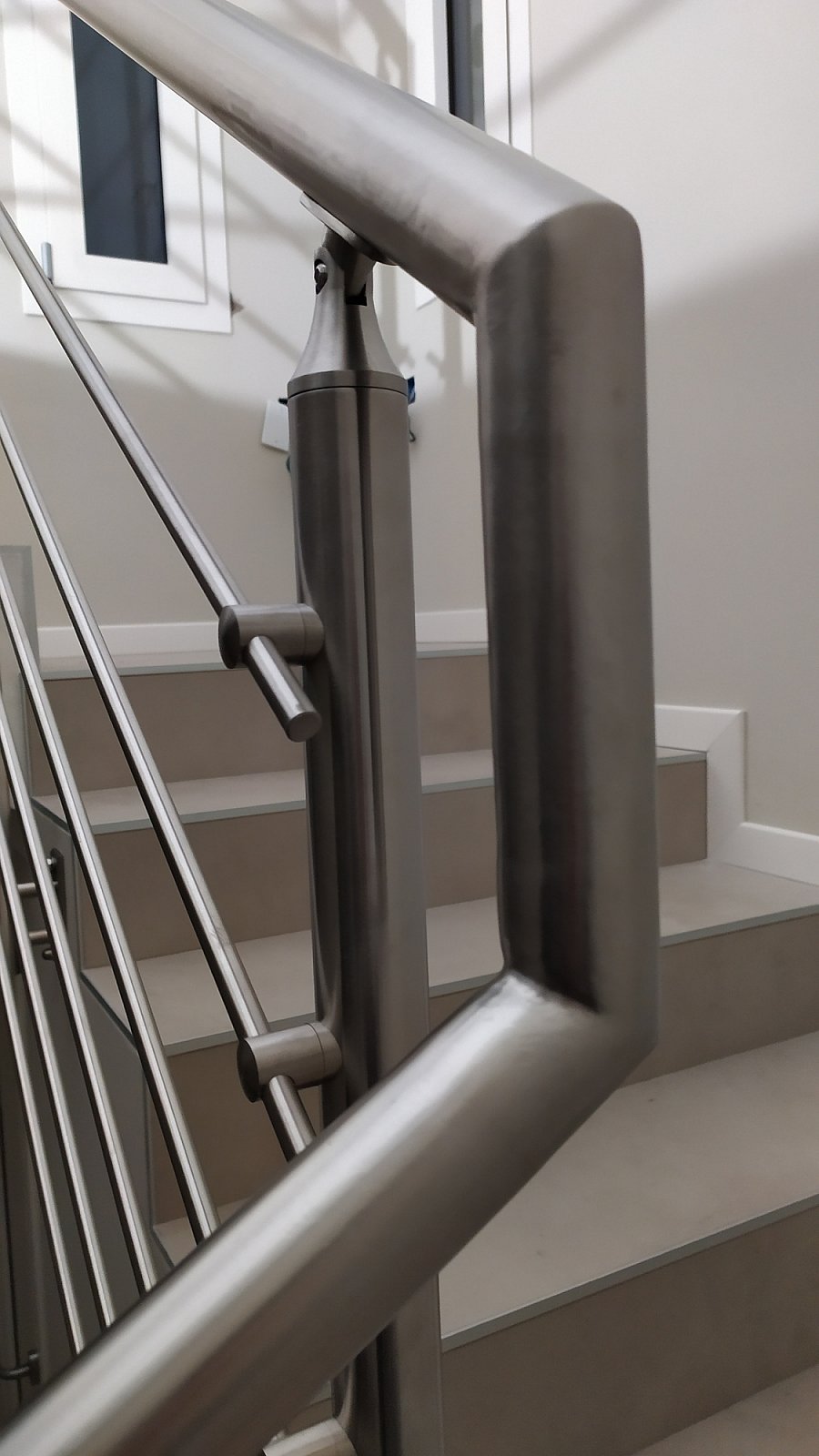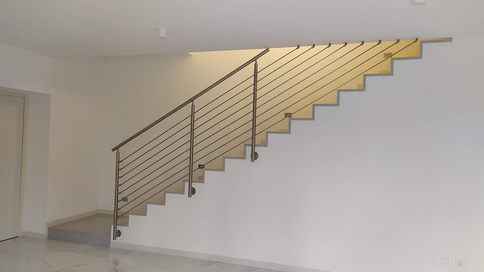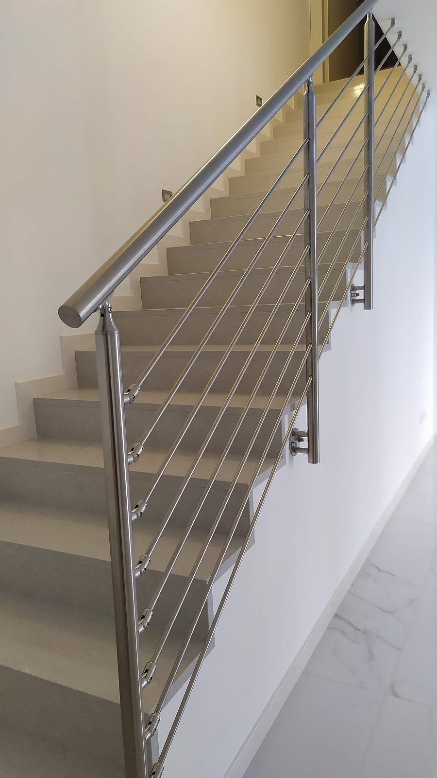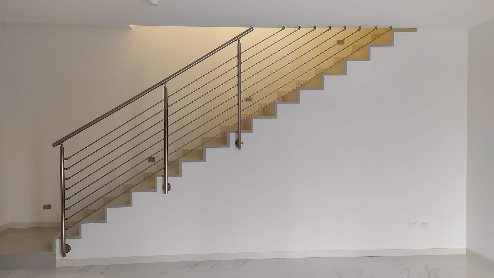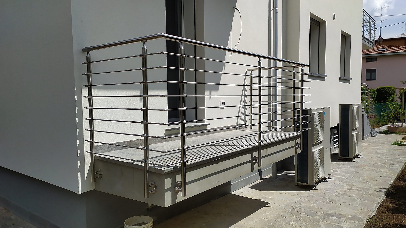 Si realizzano con corrimano e montanti in tubolare del diametro di 42,4 o 33,7 mm; i tondini del diametro di 10 e 12 mm possono essere passanti o esterni.