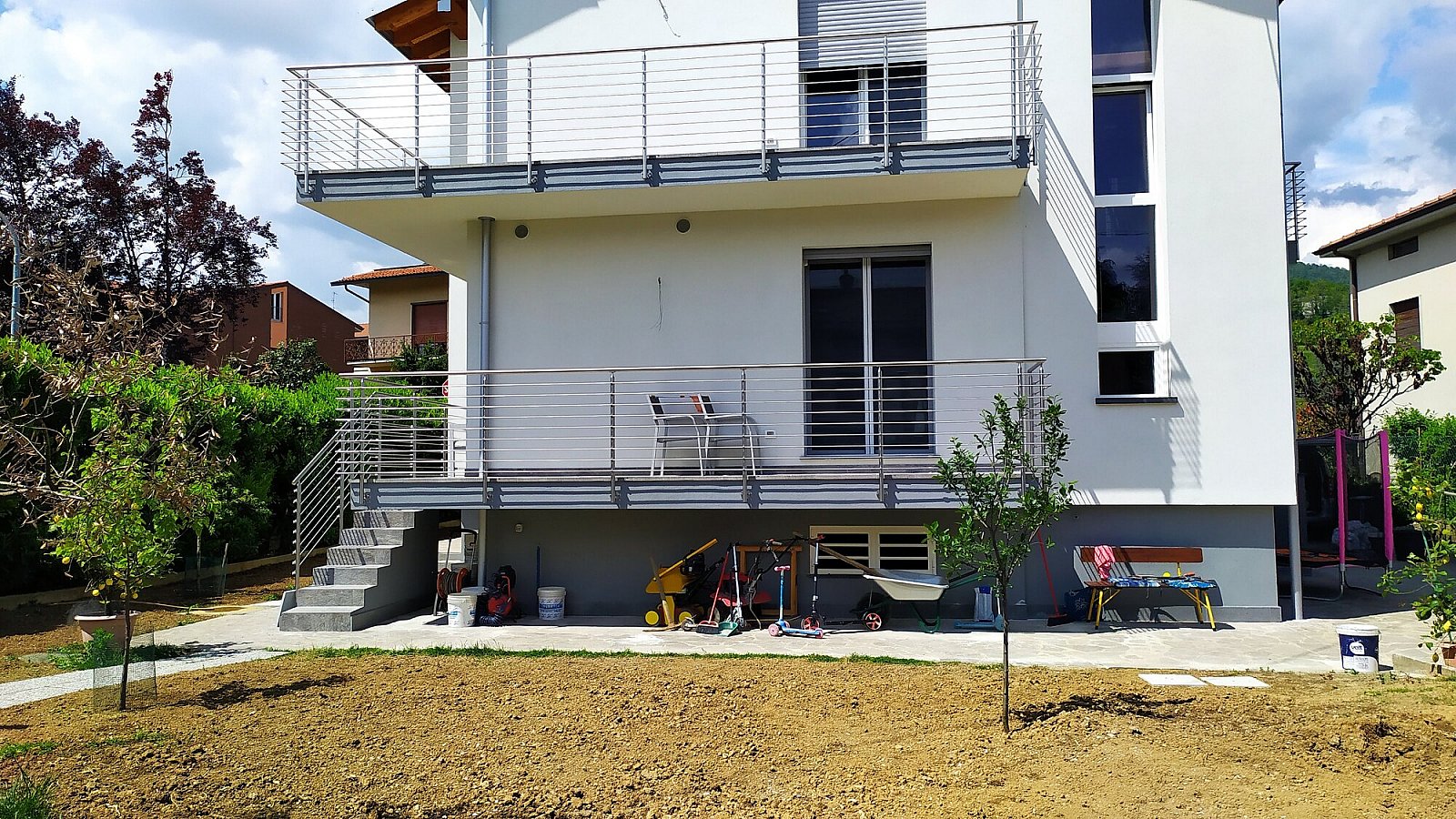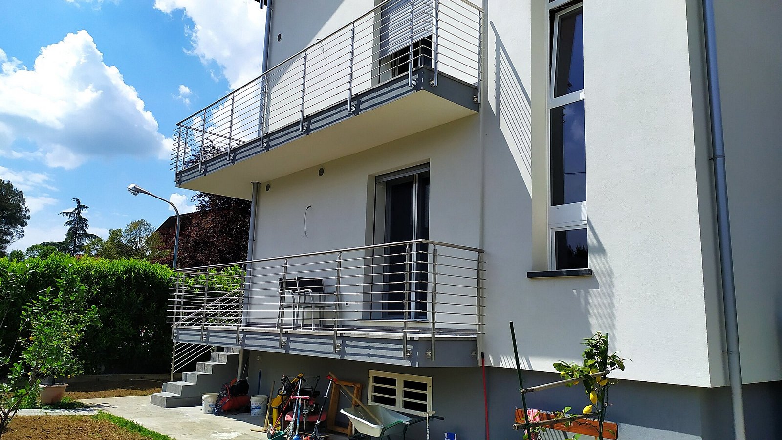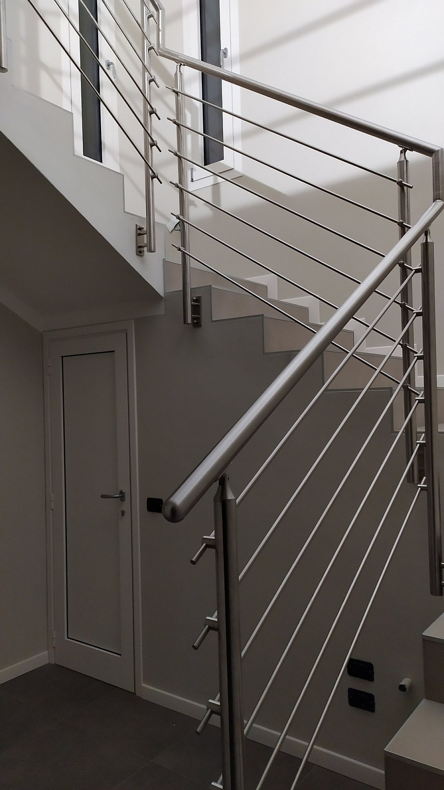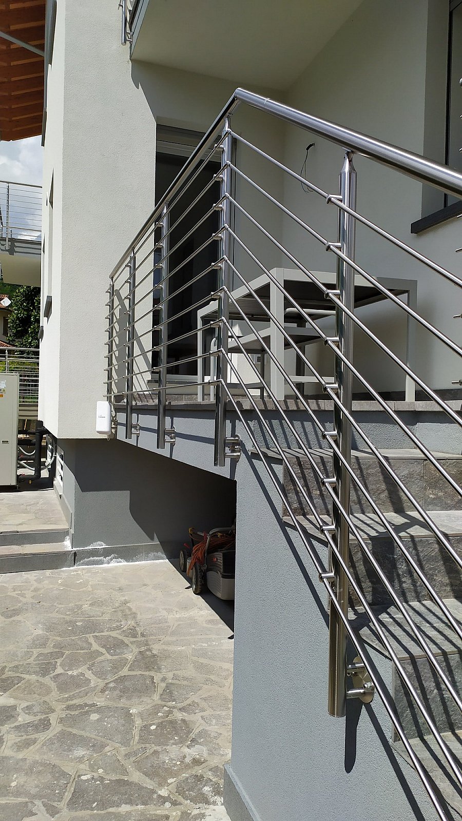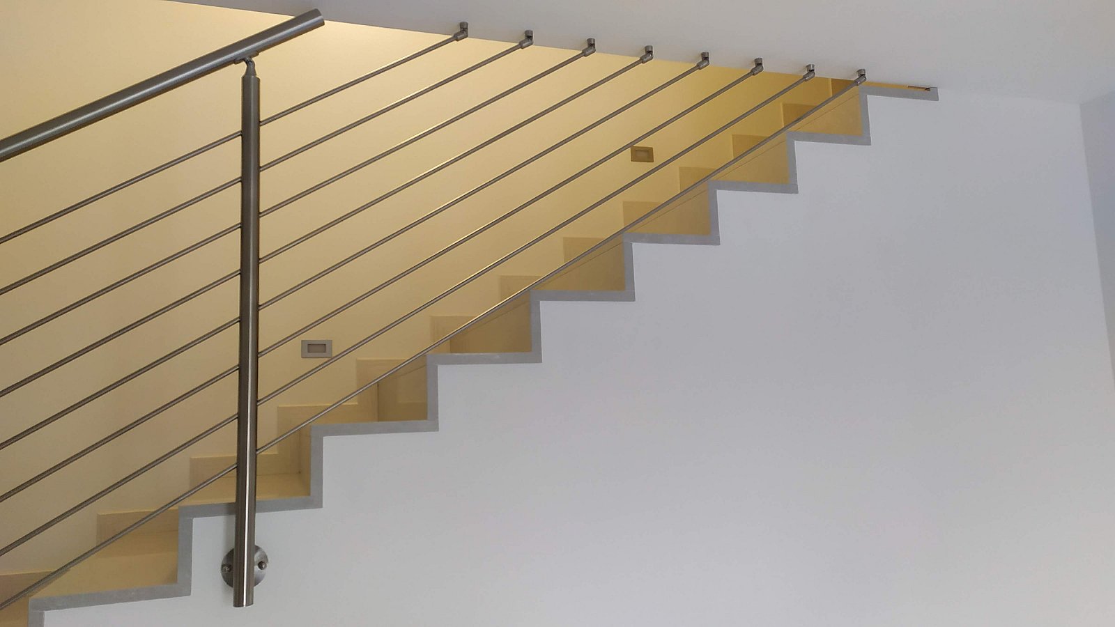 Si realizzano con corrimano e montanti in tubolare del diametro di 42,4 o 33,7 mm; i tondini del diametro di 10 e 12 mm possono essere passanti o esterni.