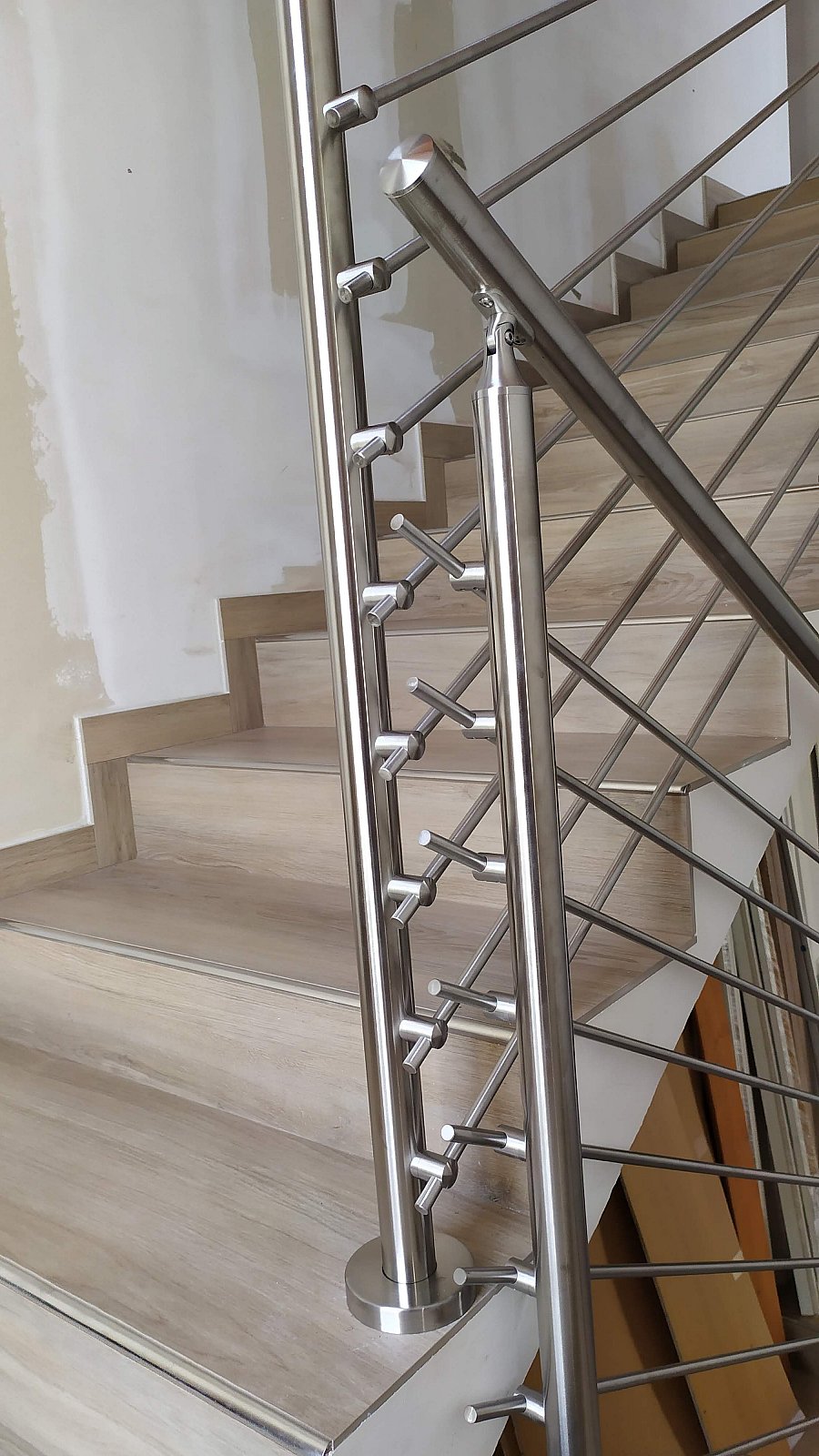 PARAPETTO CON MONTANTE TONDO IN ACCIAIO INOX